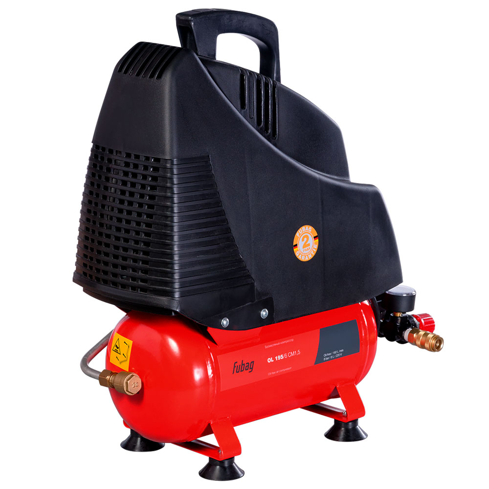 Компрессоры FUBAG OL 195/6 CM1,5 — компактные поршневые агрегаты для производства сжатого воздуха для малых нужд. Вес установки составляет всего 11 кг. Это в совокупности с компактными размерами и мобильностью позволяет использовать такие безмасляные коаксиальные устройства в условиях небольших рабочих пространств. Пригодны к применению в коммунальной и бытовой сферах, при обслуживании автотранспорта и в прочих областях использования. Работают при мощности 1,1 кВт и давлении 8 атм. При этом способны выдавать до 180 литров сжатого воздуха в минуту.